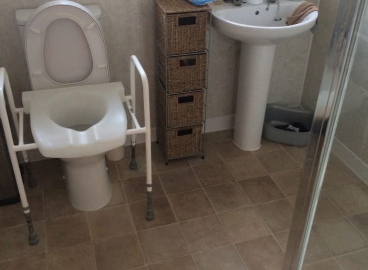 By removing the step up shower tray and screen, modifying the floor, extending the shower hose and installing a shower curtain, we were able to provide a safe showering experience, that the client was confident to use unaided and drained efficiently.