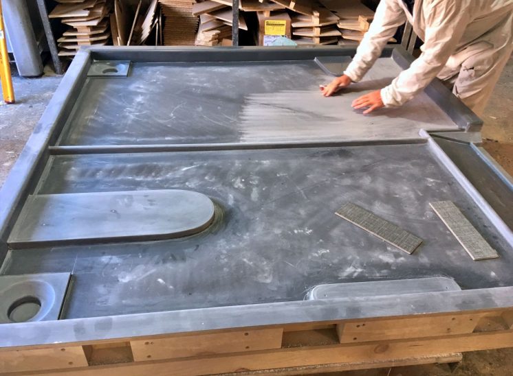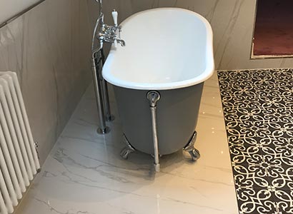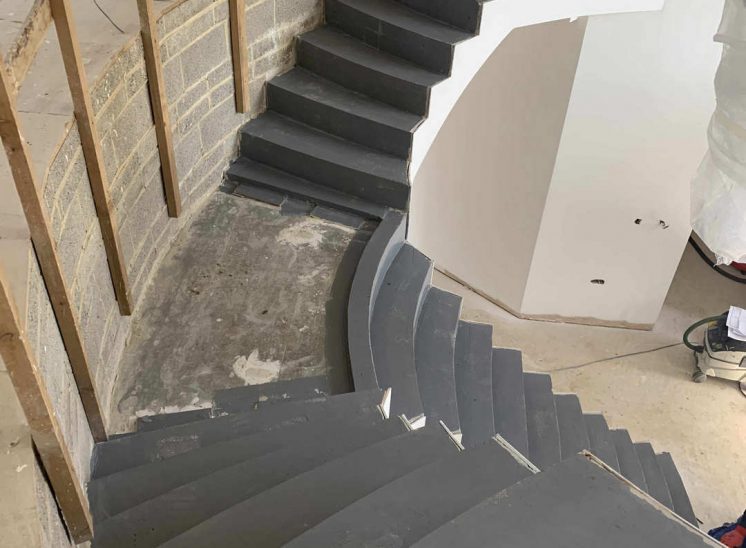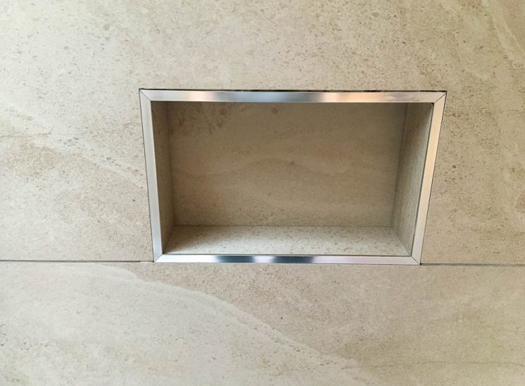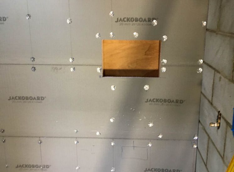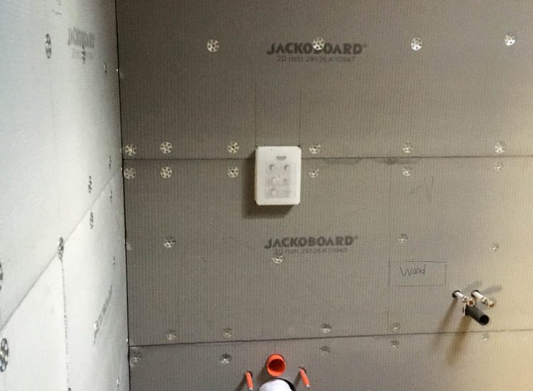We carried out all of our preparation works to this room starting with the bespoke stainless steel channel which was made to fit the room with bespoke water trap built in. Then all of the room was boarded out with Marmox boarding on the walls and then taped for water proofing.
